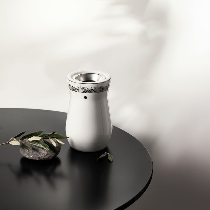 مبخرة من البورسلان الحجم: 120X170 ملم اللون: أبيض وفضي المادة: بورسلان